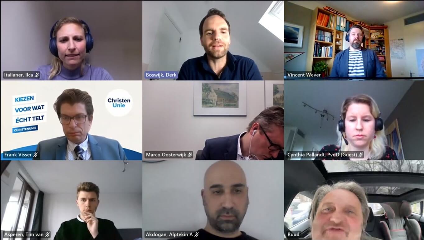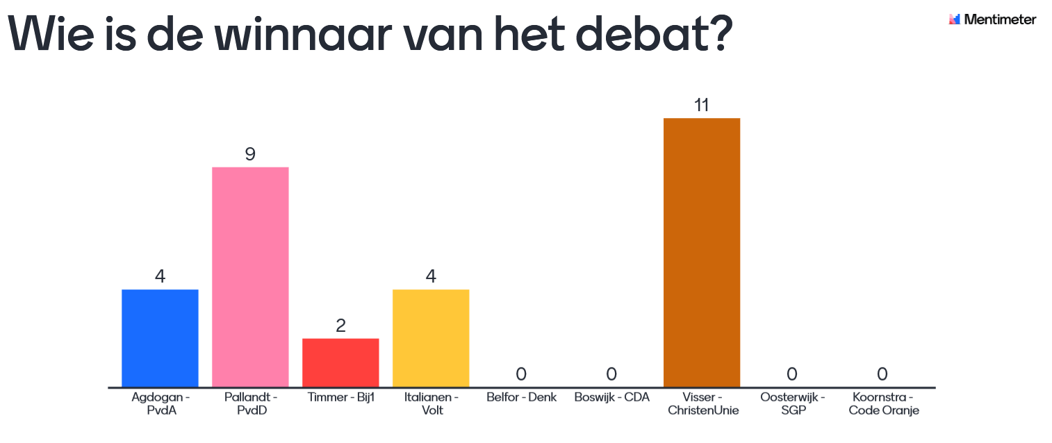 Tijdens het JV Verkiezingsdebat op 4 maart debateerden kandidaat-Kamerleden van ChristenUnie, CDA, PvdA, PvdD, SGP, Denk, Code Oranje, BIJ1 en Volt onder leiding van Vincent Wever vol enthousiasme met elkaar.